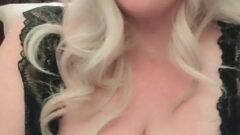Dziewczyna pieści swoje piersi i palcami cipkę