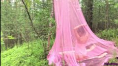 Słodka dziewczyna loda kutasa i pieska na świeżym powietrzu w namiocie