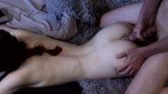 Gorąca babeczka wypina cipkę przed dużym kutaskiem